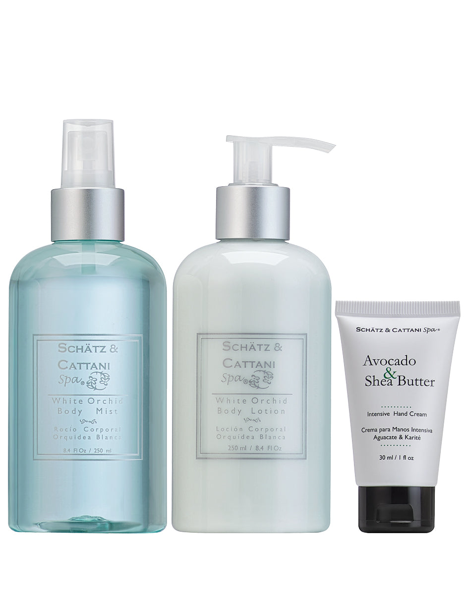 Tres productos para el cuerpo son presentados en esta caja para regalo. Humecte e hidrate la piel con esta fresca fragancia y extractos naturales. La cautivante fragancia de Orquídea Blanca, la humectación del Aceite de Almendras y la frescura del Aloe son combinados para aportar una sensación refrescante y suavizante al cuerpo.